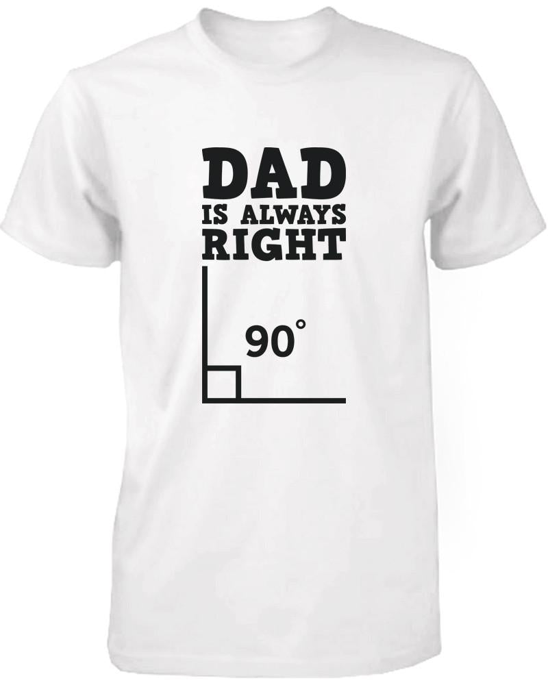 Si votre père est convaincu d'avoir toujours raison, il adorera porter notre superbe t-shirt au quotidien ! Ce t-shirt humoristique pour papa est blanc uni, orné d'un motif humoristique représentant un angle de 90 degrés et de l'inscription « Papa a toujours raison » imprimée sur le devant.